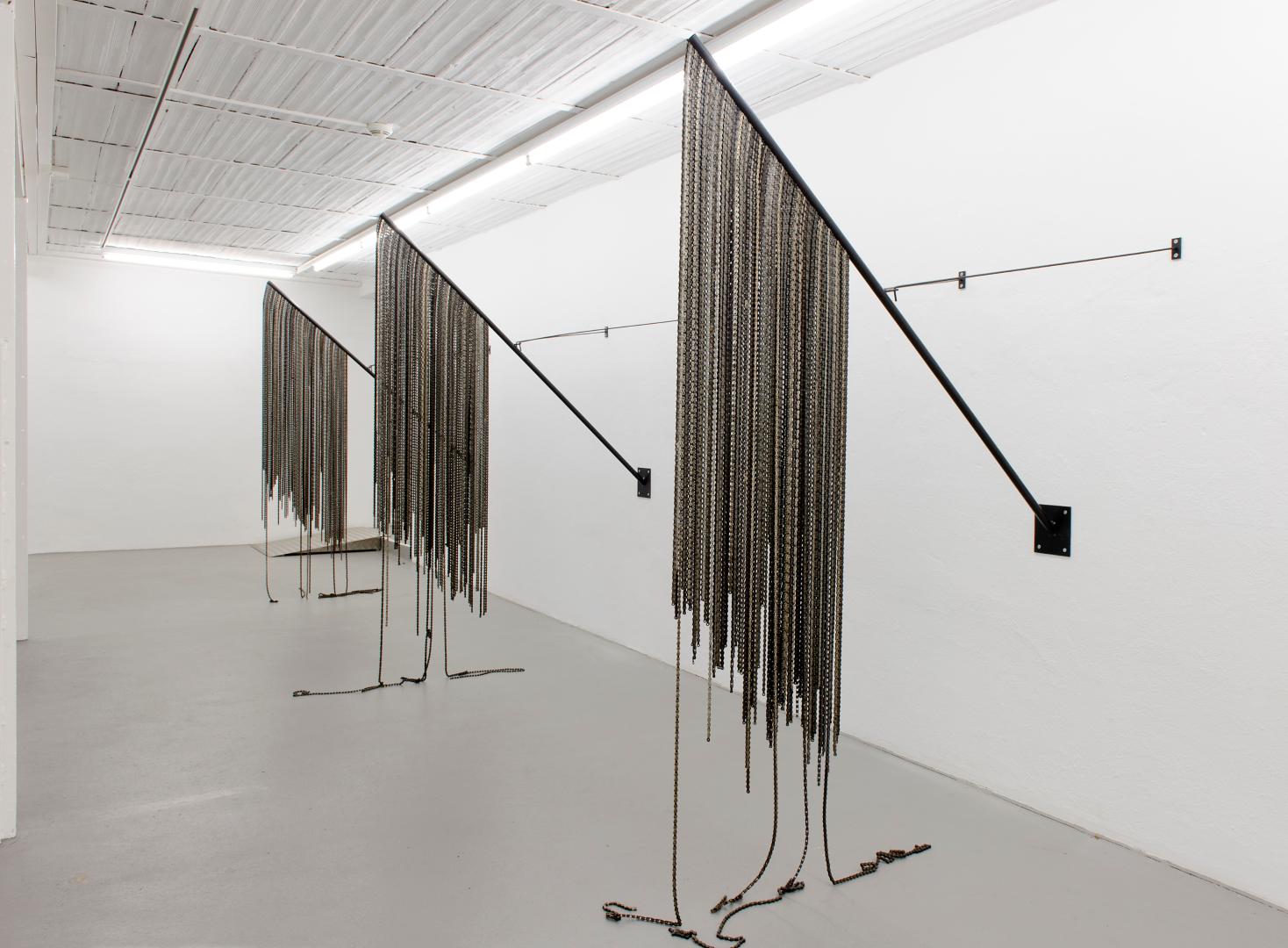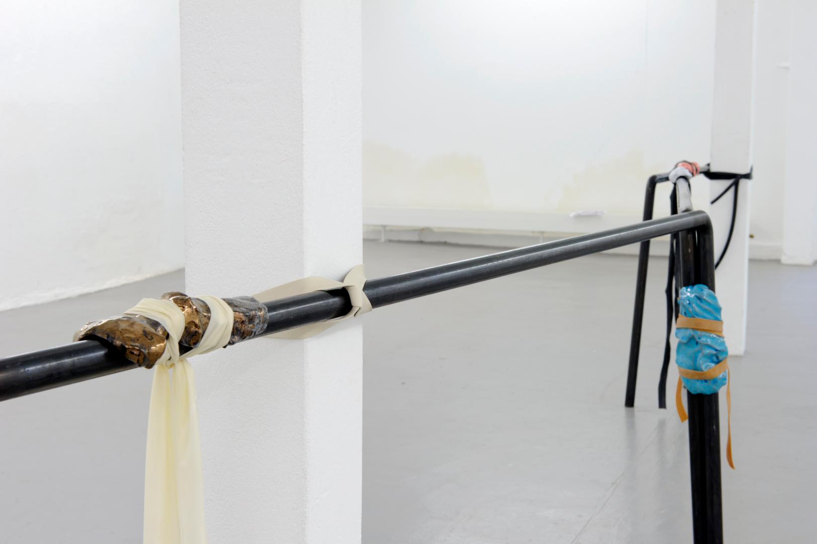 Ich finde die Formulierung ganz gut. Oft gehe ich von Objekten aus, die es im öffentlichen Raum gibt; Geländer oder Absperrgitter sind solche Punkte, an denen ich ansetze. Ich benutze dabei nie die Originalobjekte, sondern ich zitiere Aspekte, so übernehme ich zum Beispiel die Maße. Viele meiner Arbeiten beziehen sich auch in den Titeln auf real existierende Gegenstände. Dabei setze ich das Material oft widersprüchlich zu der Form oder seinem Verwendungszweck ein.