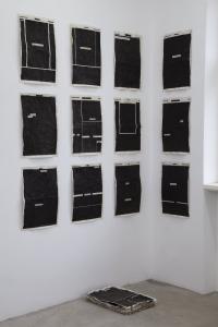 Nicht nur. Ich mache auch Collagen, und es gibt eine Reihe von Arbeiten mit Zeitungsblättern aus Tageszeitungen, bei denen ich mit Tusche alles geschwärzt habe bis auf einen einzigen Begriff aus der Überschrift. Die werden im Raster gehängt, ohne vorgegebene Ordnung. Die Seiten waren aus dem Finanzteil oder aus dem Feuilleton. Diese einzelnen Begriffe, aus dem Kontext genommen und für sich stehend, ergeben durch das Raster neue Verbindungen, einen neuen Kontext, der sich auch für jeden Betrachter anders erschließt.