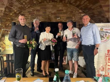 V.l.: Christopher Bothe, Stephan Raabe, Petra Marx, Michael Stübgen, Bernd Norkeweit (Fürstenwalder Brau-Freunde), André Schaller MdL