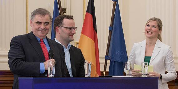 Jens Spahn MdB war als „Shooting Star“ der Politik hier besonders gefragt. Und er brachte auch gleich einige Verbesserungsvorschläge mit. Volksentscheide sind es seiner Meinung nicht, die das Problem lösen können, denn sie werden von einer aktiven Minderheit dominiert und werden leicht zu sachfremden Generalabrechnungen. Politik sollte wieder „großes Kino“ werden, spannend, diskussionsreich (auch innerparteilich!), mit Events verbunden, die auch bei jungen Leuten Interesse wecken. Die Sprache sollte weniger Fachchinesisch und mehr alltagsorientiert sein, überhaupt muss alles daran getan werden, dass der kommunikative Graben zwischen Politikern und Nichtpolitikern nicht noch tiefer wird.
