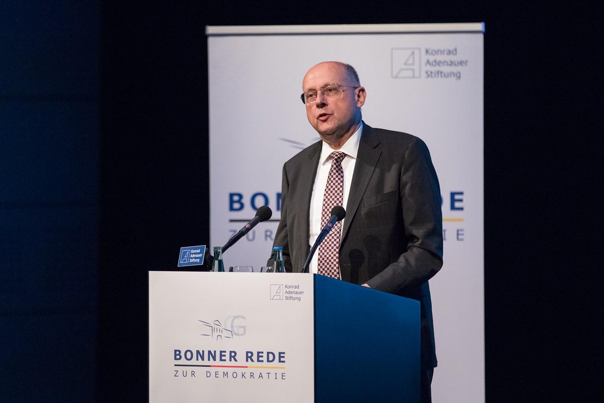 Zugegeben, Bund-Länder-Fragen können trocken sein, und wenn nicht so eine Grundspannung in der Bundeskunsthalle bestanden hätte, wären Ausführungen über die Steuerquellen der Länder, den Länderfinanzausgleich und die Hochschulpolitik auch eher ab- als aufregend gewesen. Aber von Beginn an ging es bei der Bonner Rede 2017 ums Ganze, um die Konstruktion unseres Staates, um die vom Grundgesetz mit Ewigkeitsgarantie versehene föderalstaatliche Gliederung und deren Gefährdung.