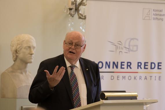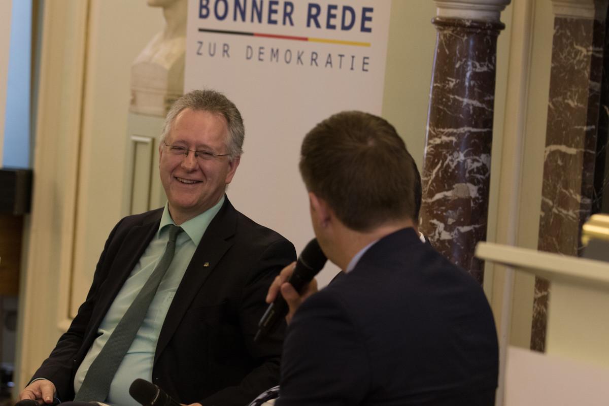 „Kunst und Wissenschaft, Forschung und Lehre sind frei. Die Freiheit der Lehre entbindet nicht von der Treue der Verfassung.“ Eben diesem Art. 5 III GG widmete sich die in diesem Jahr zum vierten Mal abgehaltene Bonner Rede zur Demokratie. Um der Verabschiedung des Grundgesetzes am 23. Mai 1949 zu gedenken, referiert jedes Jahr ein namhafter Jurist über einen Grundgesetzartikel und lässt Verfassungskonzeption mit Verfassungswirklichkeit gegeneinander laufen. Anlässlich des 200-jährigen Universitätsjubiläums der Rheinischen Friedrich-Wilhelms-Universität Bonn ist es nicht verwunderlich, dass in diesem Jahr die Freiheit von Wissenschaft, Forschung und Lehre im Mittelpunkt stand.