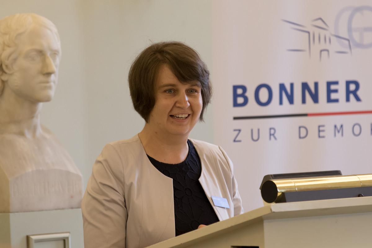 Zu Beginn begrüßte Dr. Ulrike Hospes, Leiterin Büro Bundesstadt Bonn, Konrad-Adenauer-Stiftung e.V., die anwesenden Gäste und führte in das Thema der Wissenschaftsfreiheit ein. Aktuellen Bezug zum Thema stellte sie hierbei mithilfe des „March for Science“ her. Am 22. April 2017 gingen zehntausende Menschen auf die Straßen, auch im Bonner Hofgarten, um gegen eine Einschränkung der Wissenschaft zu demonstrieren. Im Anschluss richtete auch Prof. Dr. Andreas Zimmer, Prorektor für Forschung und Innovation an der Universität Bonn, das Wort an die trotz der warmen Temperaturen zahlreich erschienenen Zuhörer. Beispielhaft erwähnte er Negativbeispiele wie die Türkei, China und Ungarn, in denen die Wissenschaftsfreiheit stark eingeschränkt werde.