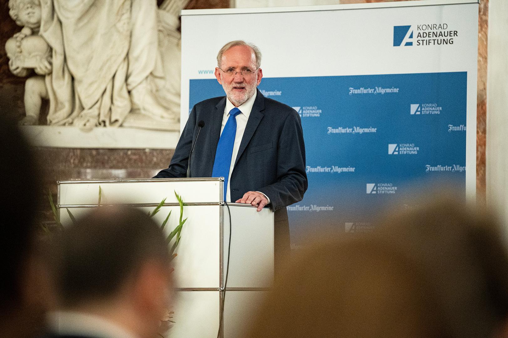 Eröffnet wurde die Veranstaltung mit einem kurzen Impulsvortrag von Prof. Dr. Norbert Lammert, Präsident des Deutschen Bundestags a.D. und Vorsitzender der Konrad-Adenauer-Stiftung. Lammert verwies auf die zunehmend als krisenhaft empfundene politische Lage und daraus resultierende Veränderungen. Spätestens der Angriff Russlands auf die Ukraine habe zu einer neuen Wahrnehmung von Realitäten beigetragen und die Vermutung „gründlich ramponiert“, dass man in „ein für alle Mal gesicherten Friedenszeiten“ lebe. Derlei Errungenschaften müssten immer wieder aufs Neue gesichert werden, sagte Lammert. „Der Frieden ist kein Naturzustand.“