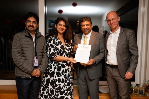 Anlässlich des Empfangs der Indischen Botschaft in Berlin würdigte Generalkonsul Mubarak Bawa Syed die zentrale Rolle der Jugend bei der Förderung von Innovation und wirtschaftlichen Wachstum. Dr. Vinay Sahasrabuddhe, ehemaliger Präsident des Indian Council for Cultural Relations (ICCR), hob indes die hohe Relevanz von Soft Power in den bilateralen Beziehungen hervor. Im Rahmen der Podiumsdiskussion „Horizonte verbinden: Kooperation in Bildung, Innovation und Mobilität zwischen Indien und Deutschland“, die von Dr. Vishnu Ramdeo moderiert wurde, erörterten Dr. Christian Wagner, SWP Berlin, Dr. Axel Baisch, Hertie School of Governance, und Dr. Carsten Schröder, Direktor DADB, spezifische Strategien zur Förderung der beidseitigen Mobilität. Den feierlichen Abschluss der Konferenz bildete ein Gespräch mit dem IT-Minister des indischen Bundesstaats Tamil Nadu, Dr. Palanivel Thiaga Rajan, der über die Herausforderungen und Chancen von Führung im digitalen Zeitalter referierte. Anschließend überreichte er gemeinsam mit den IGYLF-Vorsitzenden die Urkunden an die Teilnehmenden.
