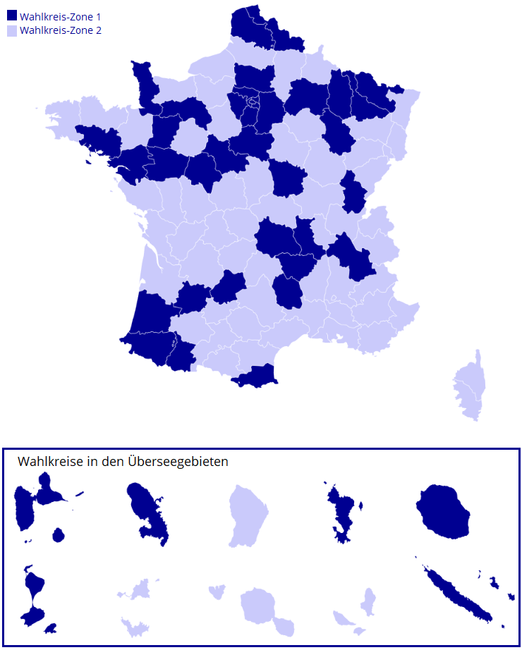 Für die Senatswahlen ist Frankreich in zwei Wahlkreis-Zonen aufgeteilt: