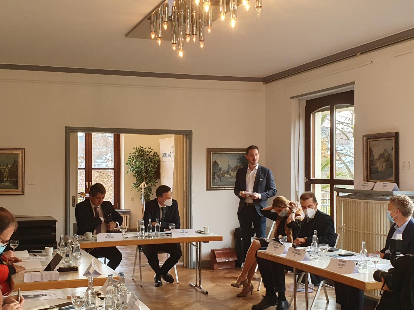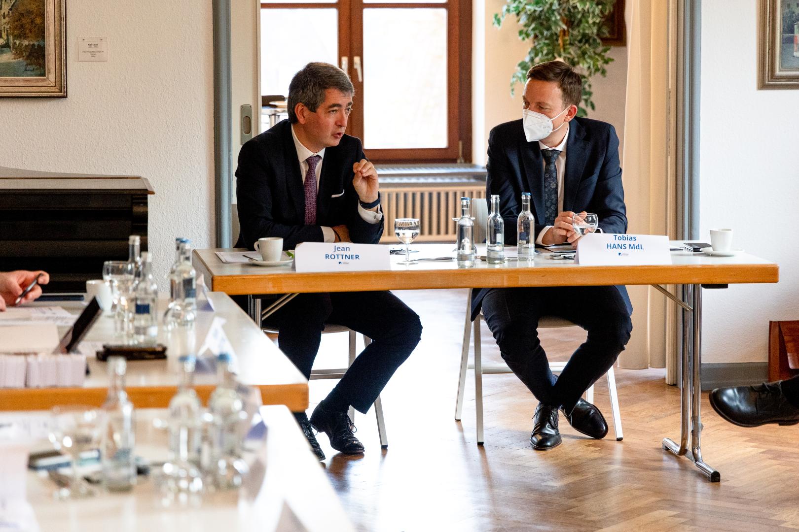 Samedi 20 novembre, la Konrad-Adenauer-Stiftung a organisé une discussion à Sankt Ingbert (Sarre) avec un cercle restreint de décideurs politiques. Prévue l’année dernière sur le thème des relations transfrontalières au temps de la pandémie, la réunion s’est tenue cette année sur les défis de la coopération transfrontalière. Parmi les participants, le ministre-président de Sarre, Tobias Hans, et le président de la Région Grand Est, Jean Rottner, sont intervenus pour dresser un état des lieux des relations transfrontalières et ont également donné un certain nombre de perspectives et de thèmes-clés pour le futur de la coopération au sein du bassin de vie commun au Grand Est et à la Sarre. La discussion, animée par Jacob Ross, attaché scientifique à la Deutsche Gesellschaft für Auswärtige Politik (DGAP), a mis en lumière plusieurs domaines dans lesquels une coopération plus étroite est souhaitée : l’environnement, les transports, la santé, mais aussi l’économie.