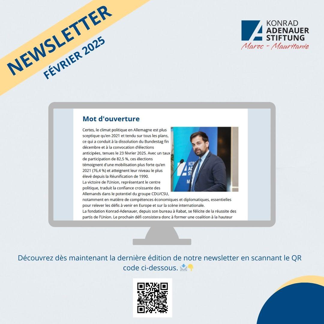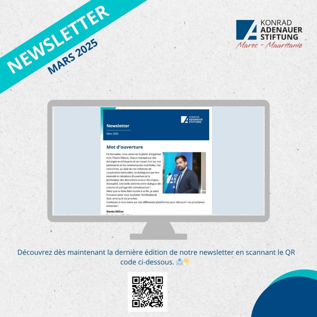 Installée à Rabat depuis 1982, la Fondation Konrad-Adenauer au Maroc travaille sur la promotion de la démocratie et de l'Etat de droit, l'économie sociale de marché et le dialogue interculturel à travers plusieurs projets menés en partenariat avec le secteur public, le secteur privé, et la société civile.