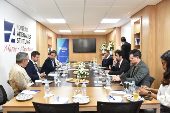 Dans le cadre de ses activités de réflexion stratégique sur l’avenir de l'Afrique, la Konrad-Adenauer-Stiftung (KAS) a convié un panel d’experts à un déjeuner-débat, le 28 avril 2025, en présence de M. Lukas Kupfernagel, directeur du bureau KAS en Éthiopie et auprès de l’Union Africaine. Au cœur des échanges : les dynamiques actuelles entre le Maroc et l’Union Africaine, avec un focus sur des enjeux stratégiques tels que la ZLECAF, la coopération Sud-Sud, et les défis environnementaux.L'événement a mis en lumière le rôle croissant du Maroc dans les instances continentales et souligné la nécessité d’un partenariat renforcé pour un développement durable et intégré de l’Afrique.