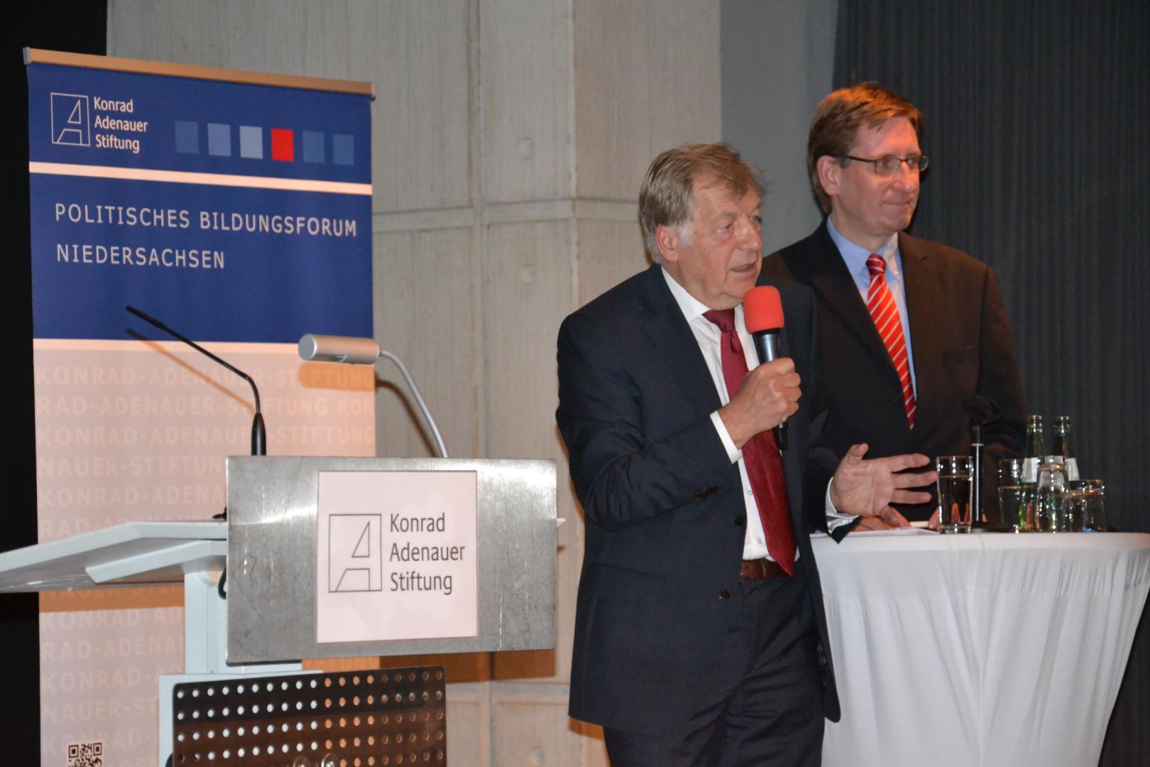 Das Politische Bildungsforum Niedersachsen wurde am 1. Januar 1993, nach der Übernahme großer Teile der Akademien der befreundeten Hermann-Ehlers-Stiftung (HES), als Hermann-Ehlers-Bildungswerk Hannover der Konrad-Adenauer-Stiftung gegründet. Dazu kam es, weil der Vorstand dieser Stiftung im Verein mit den Verbänden der niedersächsischen CDU zu der Überzeugung kam, dass eine Intensivierung der politischen Bildungsarbeit angesichts der deutschen Einheit und den daraus resultierenden Veränderungen in Europa notwendig sei. Da sich die HES weder in finanzieller noch in personeller Hinsicht in der Lage sah, einer solchen Anforderung zu entsprechen, bat sie die KAS, ihre Akademien in Niedersachsen, Hamburg und Bremen zu übernehmen. Daraufhin eröffnete der geschäftsführende KAS-Vorsitzende, Dr. Gerd Langguth, im Laufe des Jahres 1993, sechs neue Bildungswerke in Oldenburg, Osnabrück, Hannover, Lüneburg sowie in den Stadtstaaten Bremen und Hamburg.