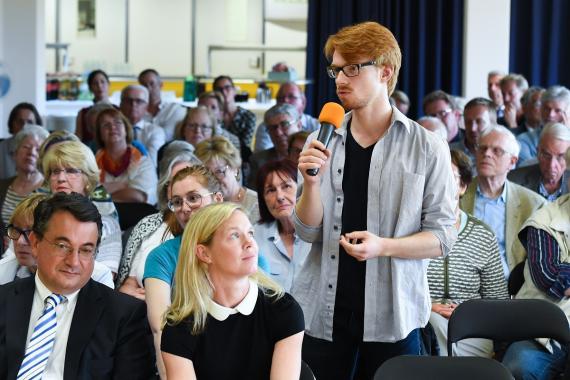 In der anschließenden Diskussion wird nochmal die USA angesprochen, die ihre Botschaft unter internationaler Kritik nach Israel verlegte. „Trump hat das nicht für uns getan, aber wir mussten jubeln.“ Auch der Ausstieg der USA aus dem Atomabkommen mit dem Iran wird Thema: „Früher hatten wir gemeinsame Interessen und haben eng zusammengearbeitet.“ Er erzählt von einem seiner Projekte, bei dem palästinensische, israelische und jordanische Studenten gemeinsam über die Europäische Union lernen. Für Primor ist es wichtig, die Länder zu verbinden: „Eine echte Freundschaft ist die zwischen Bevölkerungen, nicht zwischen Regierungen.“