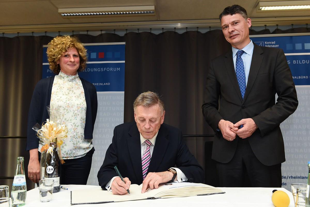 Vor knapp 200 Gästen erörtert der ehemalige Botschafter seine Gedanken dazu in der International School on the Rhine in Neuss. Der Vortrag ist Auftakt für die neue Gesprächsreihe „Jüdisches Leben im Rhein-Kreis-Neuss“. Der Schulleiter Peter Soliman begrüßt zuerst die Gäste: Es gäbe durch die vielen aktuellen Ereignisse kaum einen passenderen Zeitpunkt für die Veranstaltung. Auch Simone Habig, die Leiterin des Regionalbüros Rheinland der Konrad-Adenauer-Stiftung, begrüßt das Publikum und stellt den Schirmherren der Veranstaltung, Dr. Jörg Geerlings MdL, vor. Geerlings freut sich sehr, dass der Vortrag an einem Ort stattfindet, wo viele Kinder aus unterschiedlichen Ländern zusammen lernen.