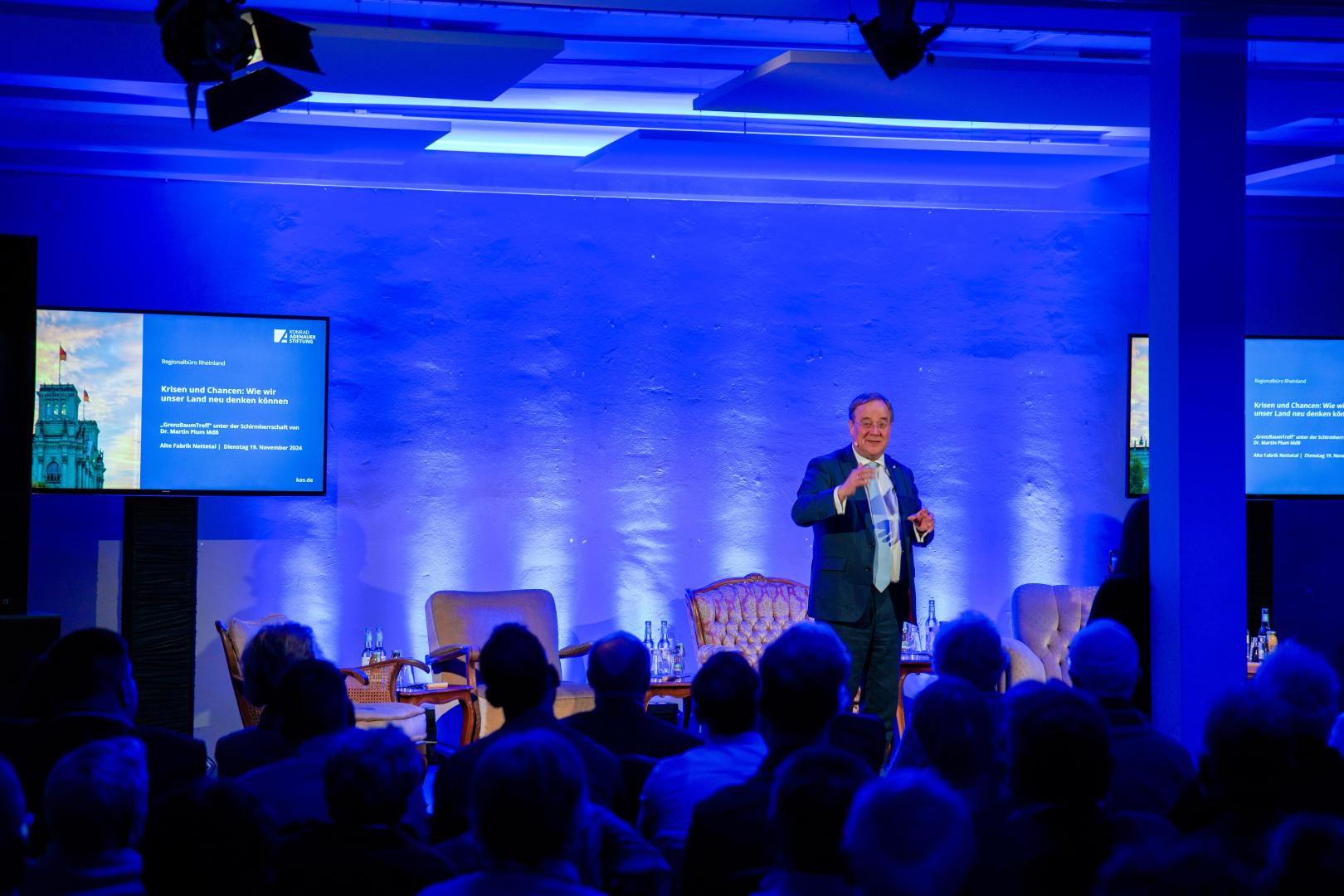 Ein zentrales Thema seines Vortrags war auch die zunehmende Polarisierung. „Demokratie muss auch Raum für unterschiedliche Meinungen bieten“, sagte Laschet – und kritisierte, dass Debatten zunehmend moralisch aufgeladen und demokratische Kompromisse als Schwäche abgetan würden. Das führe zu gesellschaftlicher Unruhe und ermögliche Extremisten – von der AfD bis zu Sahra Wagenknecht – mit einfachen Antworten zu punkten.