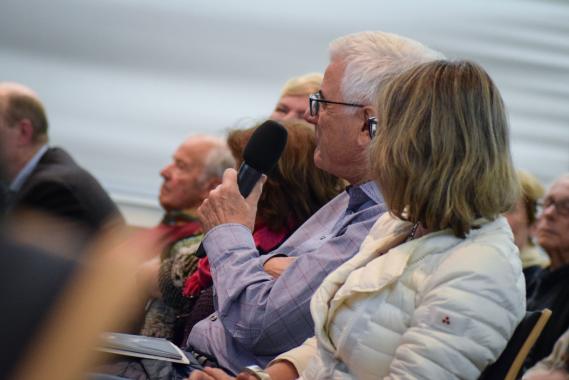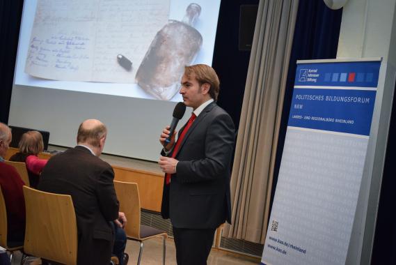 Fast 100 Jahre später erinnert der damalige französische Präsident Hollande an die Friedensbotschaft der Soldaten und zitiert ihren Brief in einer Rede: Es soll Freundschaft zwischen den Völkern geben. Mit einem Ausschnitt aus dieser beendet Espenschied seinen Vortrag. Er betont mit einem Blick auf die aktuelle Lage Europas, dass die europäischen Länder nur zusammen globale Probleme angehen können: „Für alle gibt es nur eine positive Zukunft, wenn wir ein vereintes Europa haben.“ In der anschließenden Fragerunde diskutieren die Zuschauer über die Perspektive der EU: Sie sei durch Nationalismus in Gefahr. „Ein Europa der Vaterländer wird nicht reichen“, ist Espenschied sicher. Um Europa zu sichern, würde mehr politische Bildung in den Schulen gebraucht. Am Ende zieht er aber ein positives Fazit: „Vor 100 Jahren war der Frieden für die sechs Soldaten ein nicht zu erreichender Traum, eine Utopie – was sie wohl heute sagen würden?“