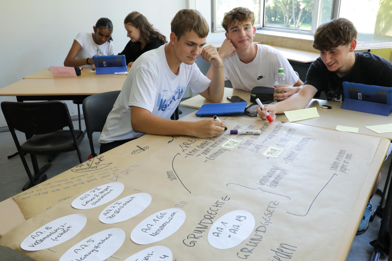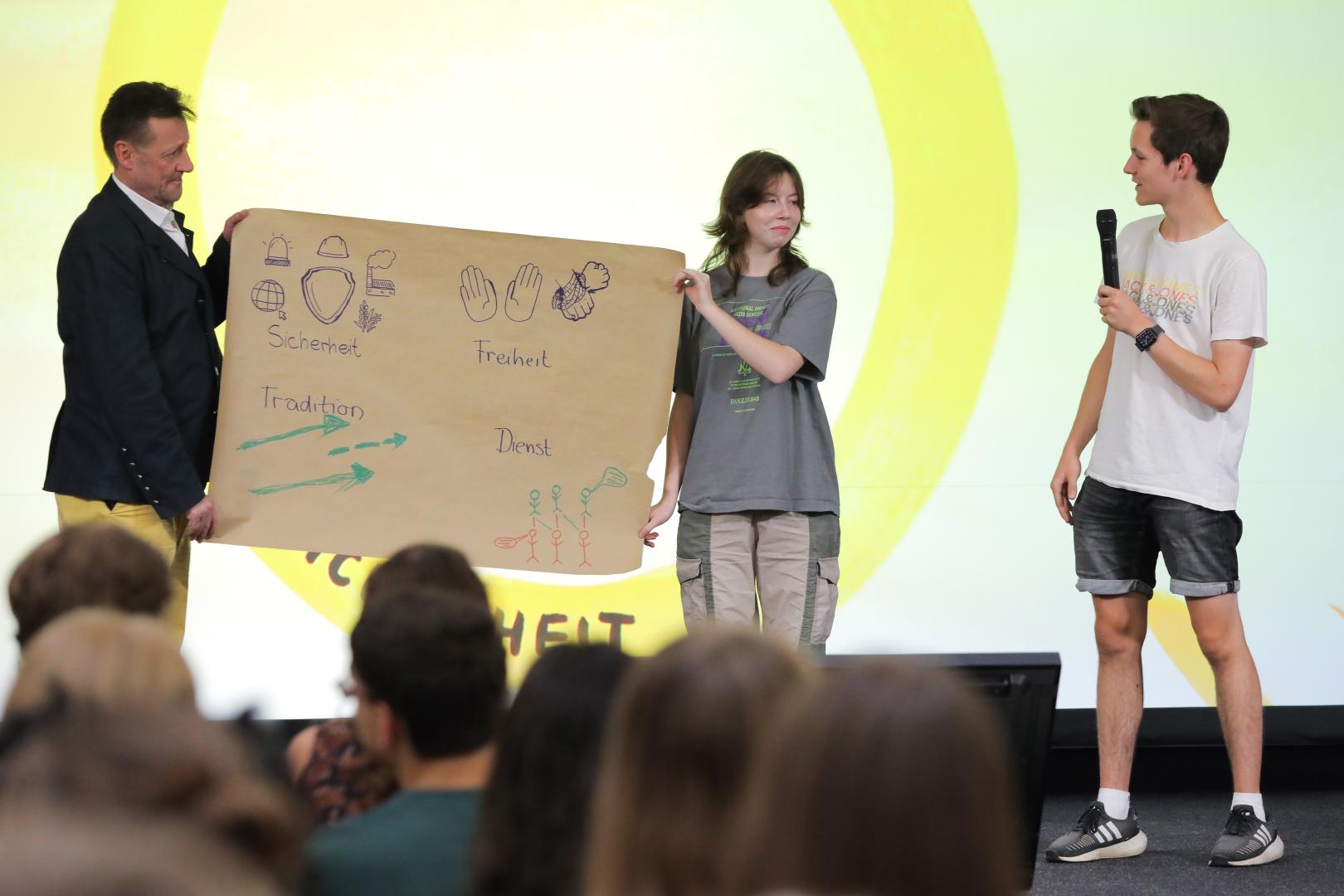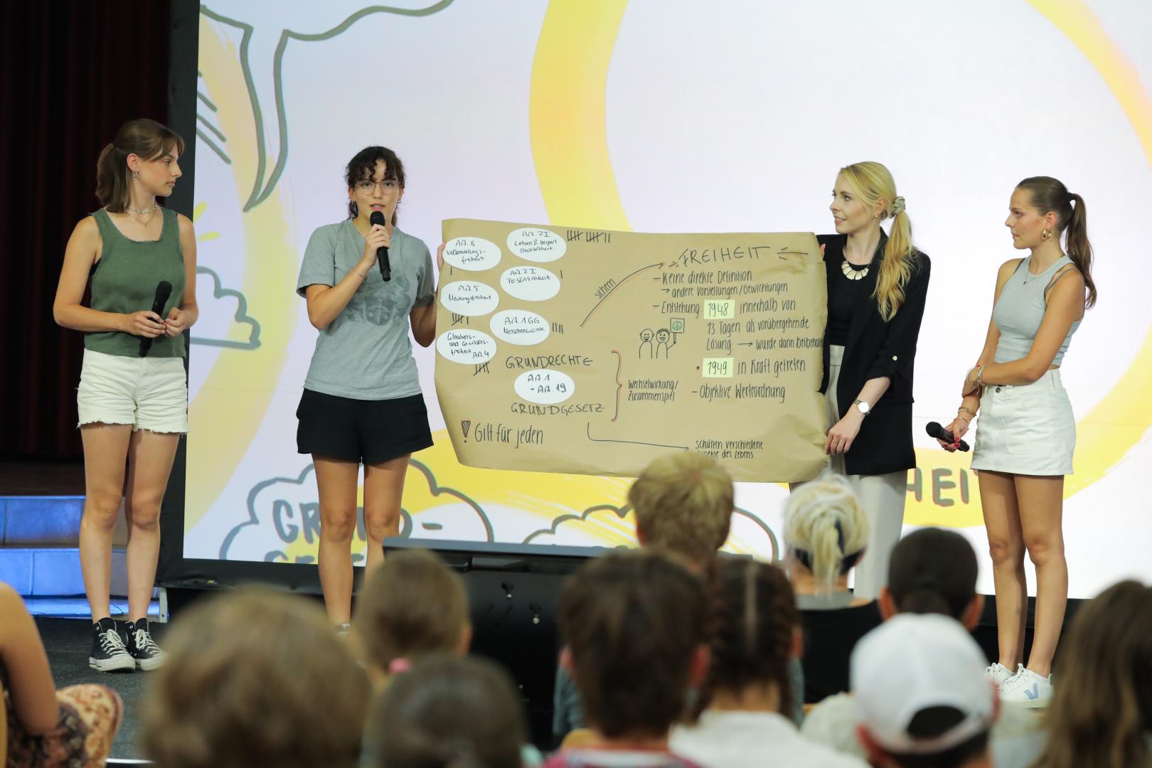 Prof. Dr. Anabel Ternès von Hattburg diskutierte mit den Schülerinnen und Schülern unter anderem darüber, welche Rolle mentale Gesundheit bei der Gestaltung unserer persönlichen Freiheit spielt. Kabarettist Marius Jung sensibilisierte in seinem Workshop für Rassismus - sowohl im Alltag als auch in der Sprache.