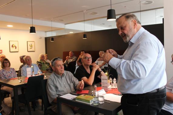 Während des Abendessens sprach die Gruppe mit dem Ehrenvorsitzenden Prof. Dr. Bernard Vogel über den Pfälzer Helmut Kohl als Privatperson. Vogel und Kohl hatten sich 1956 beim Studium in Heidelberg kennen gelernt. Die Pfalz als Heimat war für Helmut Kohl stets wichtig, sie war prägend für Wirken und Persönlichkeit!
