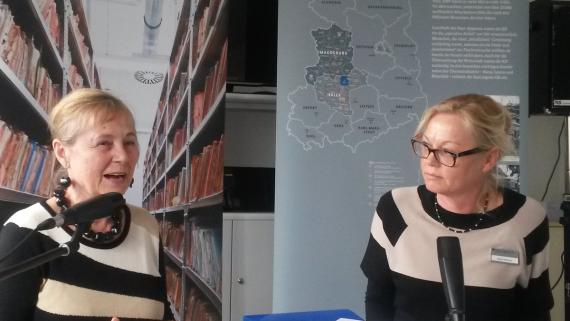 Dr. Rohrbach berichtete im Zeitzeugengespräch über ihren dramatischen Fluchtversuch, den das MfS bis hin zur Verurteilung und ihrer endgültigen Ausreise umfangreich dokumentierte. Ergänzend dazu reichte Marit Krätzer von der BStU Halle Unterlagen aus der Stasi-Akte von Frau Dr. Rohrbach zur Ansicht in die Runde der Teilnehmer.
