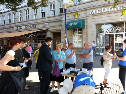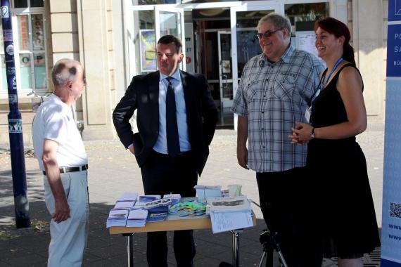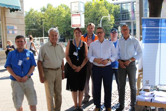 Unterstützt wurde das Team des Politischen Bildungsforums Sachsen-Anhalt von Mitgliedern des Zukunftsteams der Konrad-Adenauer-Stiftung: Katharina Pongratz, Giorgi Doinjashvili, Andreas Sommer und Stefan Feldt wirkten ebenfalls als Gesprächspartner mit Bürgerinnen und Bürgern und führten Interviews für ein Projekt des Zukunftsteams.