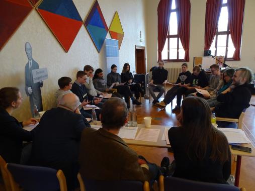 In der Vorrunde fanden sechs Diskussionen mit 8 bzw. 9 Teilnehmern statt. Debattiert wurde über die Überwindung der Finanz- und Wirtschaftskrise, die Wahrnehmung Sachsen-Anhalts als Region in Europa, den bevorstehenden Austritt Großbritanniens aus der EU („Brexit“), die Klimaziele der EU und weltweit, die Zusammenarbeit in Europa bei der Bekämpfung der Gefahren durch Terrorismus und Organisierte Kriminalität sowie über Möglichkeiten und Schwierigkeiten der Gemeinsamen Außen- und Sicherheitspolitik. Die jungen Leute zeigten sich sehr engagiert und fanden starke Argumente für den rhetorischen Schlagabtausch.