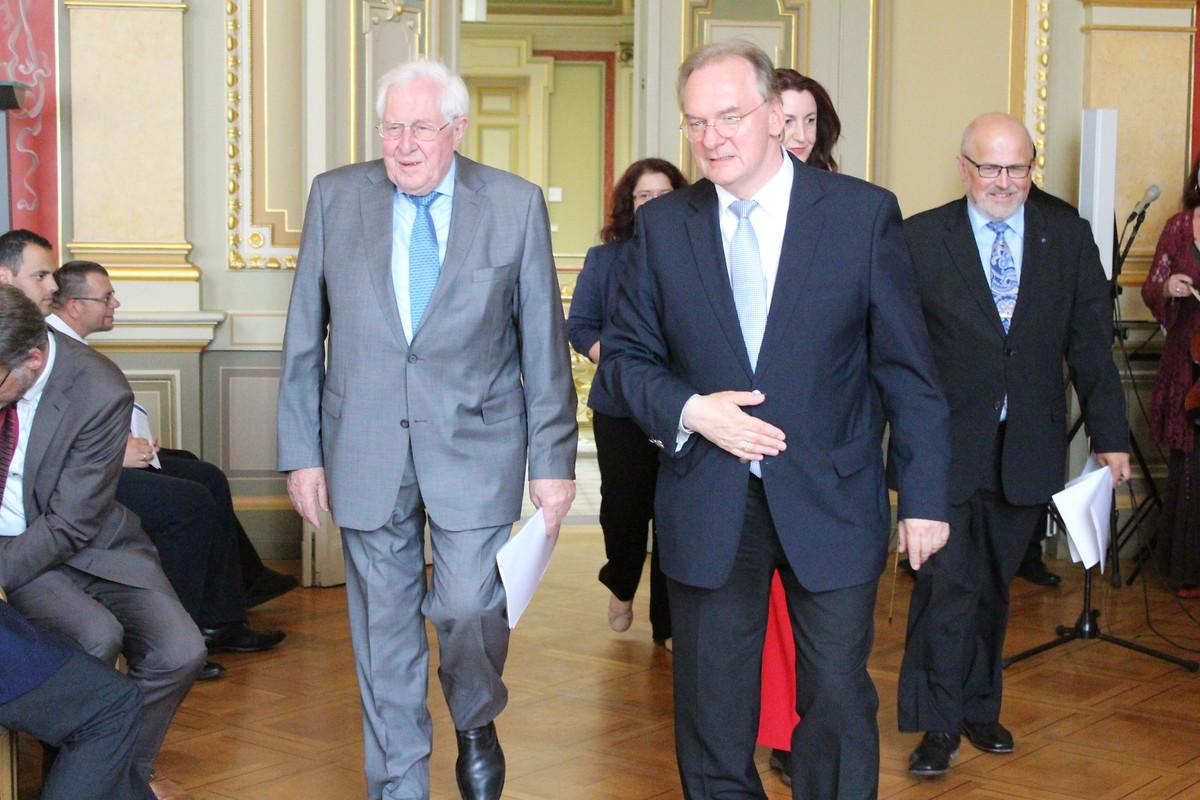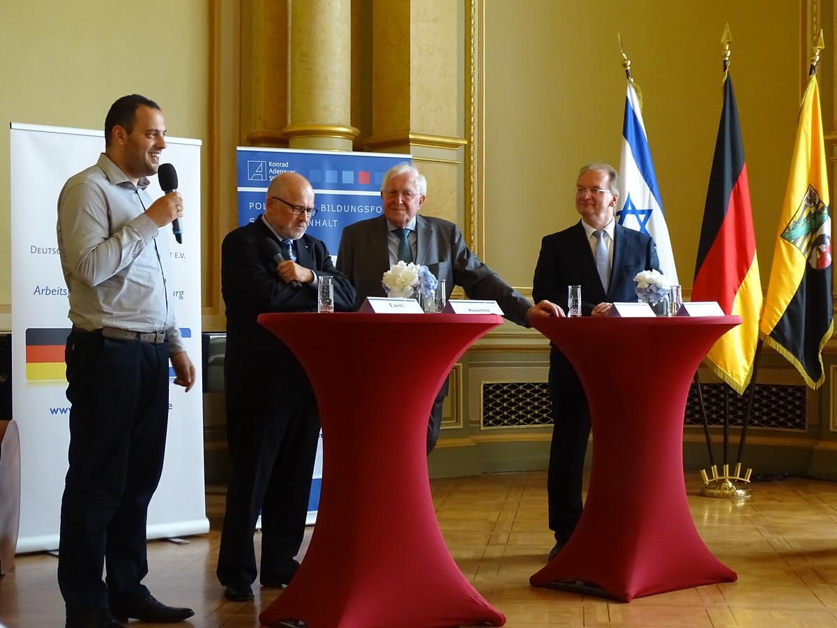 In ihren Grußworten betonten Dr. Reiner Haseloff MdL (Ministerpräsident des Landes Sachsen-Anhalt) und Jeremy Issacharoff (Botschafter des Staates Israel in der Bundesrepublik Deutschland) die Bedeutung der Freundschaft zwischen Israel und Deutschland. Sie sprachen über die politischen Beziehungen und über die wirtschaftlichen Kontakte, aber auch über die Zusammenarbeit in Bereichen wir Kultur, Wissenschaft und Sport. Der Ministerpräsident war erst wenige Tage zuvor aus Israel zurückgekehrt und berichtete über seine Eindrücke und über die freundschaftlichen Beziehungen des Bundeslands Sachsen-Anhalt in Israel. Insbesondere hoben Haseloff und Issacharoff die gelebte Freundschaft zwischen den Menschen hervor – etwa bei Schüleraustauschen oder bei gegenseitigen touristischen Besuchen. Beide warnten allerdings auch vor einem Anwachsen des Antisemitismus in Deutschland und in weiteren europäischen Staaten