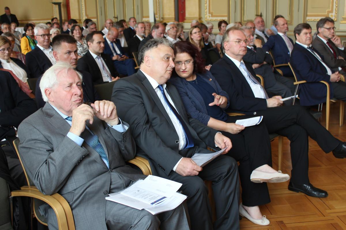 Heute ist in Deutschland ein jüdisches Leben ohne Angst möglich, wie Prof. Vogel betonte. Zugleich ist Wachsamkeit geboten, nicht jedoch Ängstlichkeit – wichtig seien Wachsamkeit und Entschiedenheit! Die Beziehungen können die Routine sein, sondern es gilt, stets neu Position zu beziehen. Dabei ist Mut nötig, die Herausforderungen der Gegenwart und Zukunft zu bewältigen – dies auch mit Blick auf jene, die frühere Herausforderungen bewältigt hatten, schloss der Ehrenvorsitzende Prof. Dr. Bernhard Vogel seine Festrede. Dabei erinnerte er an die Worte, die er vor Jahren in das Gedenkbuch in Yad Vashem geschrieben hatte: „Wir wollen nicht vergessen, aber wir wollen gemeinsam eine bessere Zukunft gestalten“.