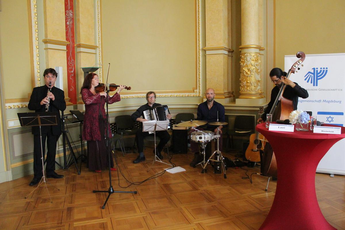 Als Beispiel der freundschaftlichen Beziehungen nahm Nir Lasri an der Diskussion teil. Der junge Israeli absolviert derzeit ein Studium an der Otto-von-Guericke-Universität Magdeburg und hat in Sachsen-Anhalt auch eine Familie gegründet. Moderiert wurde die Kooperationsveranstaltung von Gerhard Miesterfeldt (Vorsitzender der Arbeitsgemeinschaft Magdeburg der Deutsch-Israelischen Gesellschaft e.V.), die Klezmer-Band „Foyal“ bereicherte das Programm mit musikalischer Umrahmung.