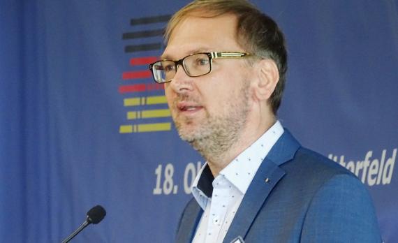 Als Vertreter eines Unternehmens sprach anschließend Martin Halliger. Der Pressesprecher der InfraLeuna GmbH stellte sein Unternehmen sowie den Chemiestandort Leuna vor, verwies ebenso auch auf die politische Entwicklung und auf das „Kanzlerversprechen“ Dr. Helmut Kohls im Jahr 1991, die Chemieindustrie in der Region zu sichern. Heute ist Leuna einer der größten Chemiestandorte Deutschlands, auf dem zahlreiche Unternehmen angesiedelt sind. Die Unternehmen suchen jeweils Fachkräfte; Herr Halliger zeigte Möglichkeiten der Ausbildung auf und stellte junge Menschen vor, die ihre Zukunft im Unternehmen gefunden haben.