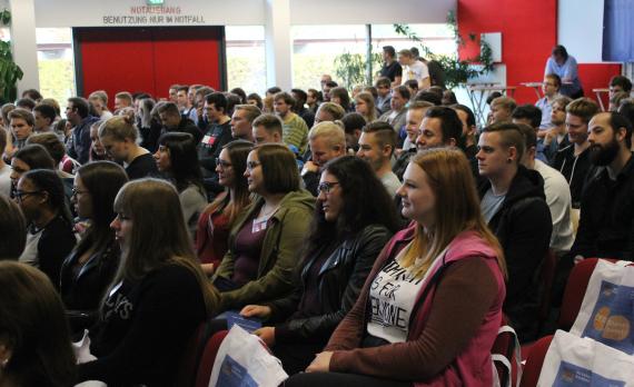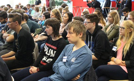Mit Blick auf die Workshops zu Zukunftsfragen appellierte der Ministerpräsident an die jungen Leute, sich in die Diskussionen einzubringen und viele Fragen zu stellen. Er verwies nochmals auf die Arbeitsmarktsituation, denn mit 8 Prozent hat Sachsen-Anhalt heute die Niedrigste seit den 1990er Jahren. Der Mangel an Arbeitsplätzen ist heute kein Grund mehr, das Bundesland zu verlassen. Mit Blick auf die Heimat und die Berufswahl sei zugleich Kenntnis der regionalen Branchenstruktur wichtig. Auch gibt es ideale Bedingungen für ein Studium, denn an den zwei Universitäten sowie an den Fachhochschulen im Land wird das ganze Tableau an Studiengängen angeboten. Zudem besteht die Möglichkeit zum dualen Studium – damit verbunden auch die Frage der Entscheidung für einen Weg zum Abitur oder nicht. Mit einem dualen Studium ist zudem bereits während der Ausbildung eine Stelle in der Region sicher.