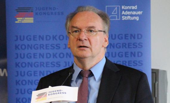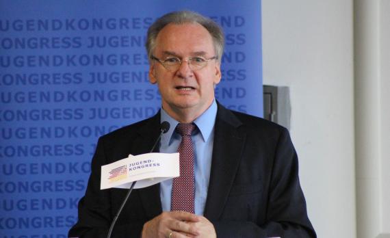 Ministerpräsident Dr. Reiner Haseloff lobte, dass der Zukunftskongress in Sachsen-Anhalt stattfindet und betonte, Bitterfeld sei eine sehr gute Wahl. An die Veranstalter gerichtet bekräftigte er, dass ein Jugendkongress dieser Art gebraucht wird und es efreulicherweise gelungen ist, Schülerinnen und Schüler aller Schularten für die Teilnahme zu gewinnen. Dr. Haseloff verwies darauf, wie dringend Fachkräfte gesucht werden: Nur durch eine ausgezeichnete Qualifizierung ist die Stärke der Unternehmen nachhaltig gewährleistet bzw. junge Menschen können künftig selbst Unternehmen gründen. Eine vernünftige Ausbildung öffnet alle Türen. Der Ministerpräsident erinnerte, dass sich die Situation im Land geändert hat: Herrschte vor Jahren eine höhere Arbeitslosigkeit, kann heute das Potenzial vorhandener Stellen ausgeschöpft werden. In allen Bereichen ist eine ständige Personalentwicklung nötig, die auch zum Austausch zwischen den Generationen innerhalb der Unternehmen führt: Während die Älteren ihre Erfahrungen einbringen, gibt es zugleich Raum für junge Menschen mit neuen Ideen. Ein Problem stellt allerdings dar, dass es in vielen Unternehmen keine Nachfolge gibt; dies trifft auch auf Familienunternehmen zu. Diese haben großes Glück, wenn es Nachfolger und damit eine Zukunft für das Unternehmen gibt.