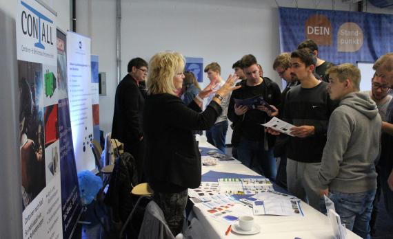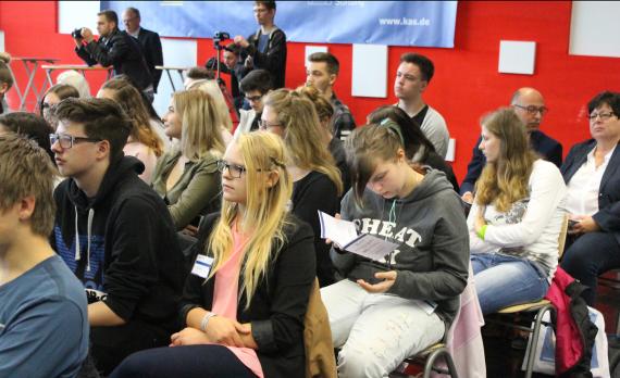 Zahlreiche Unternehmen, Vereine und Verbände sowie die Begabtenförderung der Konrad-Adenauer-Stiftung stellten sich zudem im Rahmen des Kongresses an Informationsständen vor, die insbesondere während der Mittagspause von den Schülerinnen und Schülern gut frequentiert wurden. Die jungen Leute informierten sich dabei über Möglichkeiten zu Ausbildung bzw. Praktika, Unternehmensgründungen sowie über konkrete Berufszweige.