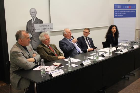 „Stellt Euch vor, es ist Demokratie und keiner macht mit.“ Diese Aussage beinhaltet viele Aspekte, warum Engagement für die Demokratie wichtig ist. Wie gefestigt ist die Demokratie in der Bundesrepublik Deutschland und insbesondere hier in Sachsen-Anhalt, besonders in dieser Zeit? Im Rahmen der Themenreihe „25 Jahre Sachsen-Anhalt – Von der Neugründung zum Zukunftsland in der Mitte Deutschlands“ hatte das Politische Bildungsforum Sachsen-Anhalt der Konrad-Adenauer-Stiftung zu seiner Abschlussveranstaltung ins Landesmuseum für Vorgeschichte nach Halle (Saale) eingeladen, um mit prominenten Gesprächspartnern zu diskutieren. Moderiert wurde die Veranstaltung von Tino Grosche (Agentur REDEzeit).