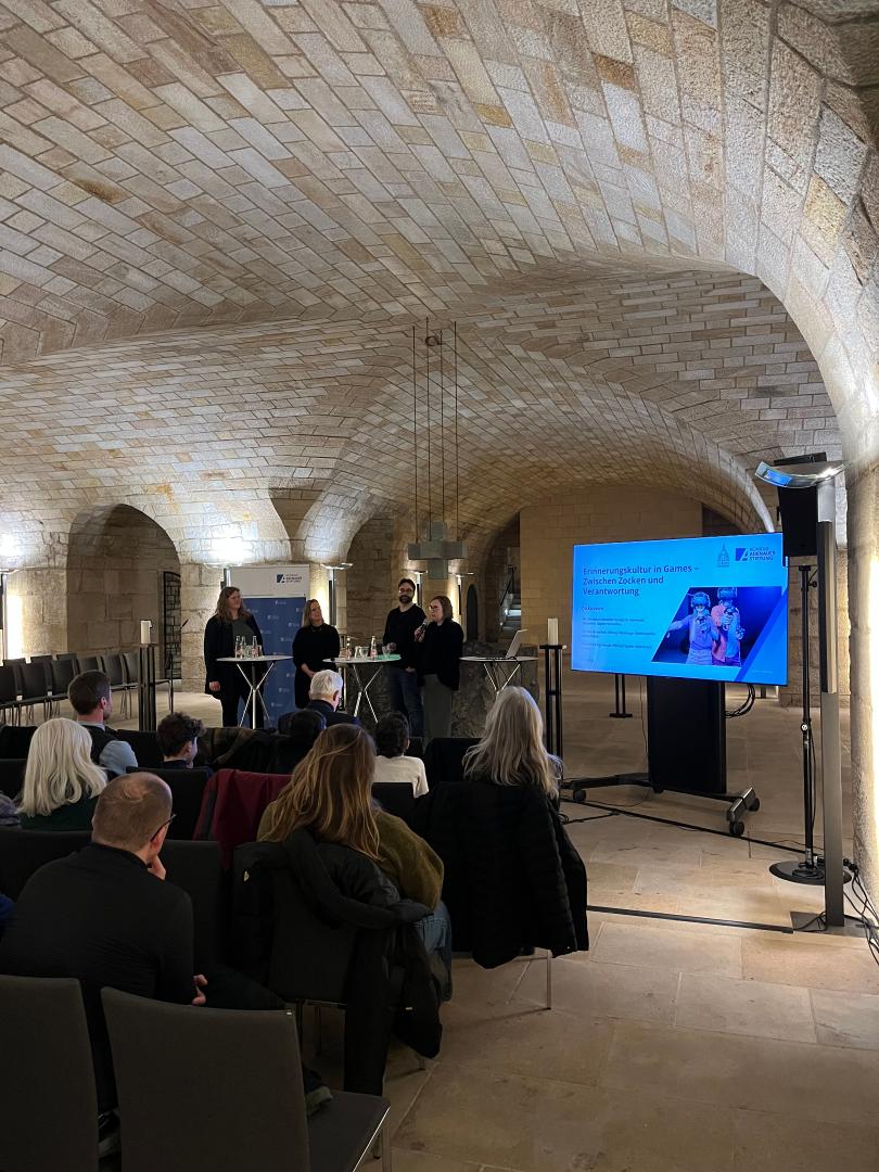 Aus der Perspektive der Branche sprach Nandita Wegehaupt von der Stiftung Digitale Spielekultur. Sie gab Einblicke in laufende Projekte, in denen Entwicklerinnen und Entwickler mit Historikerinnen, Pädagogen und Gedenkstätten kooperieren. Ihr Schwerpunkt lag auf der Frage, wo Spiele Freiräume benötigen und wo klare Grenzen gezogen werden müssen, um historische Komplexität nicht zugunsten von Spielbarkeit zu reduzieren.