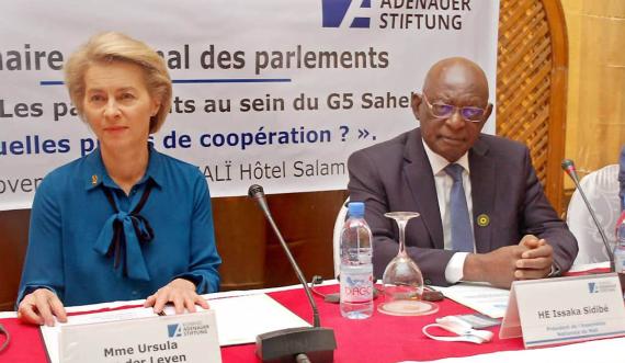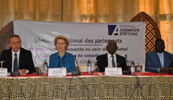 Im Zentrum des Treffens stand die künftige Rolle der Parlamente im Rahmen des G5 Sahel Prozesses und die verschiedenen bereits angestoßenen Initiativen zur Verbesserung der Zusammenarbeit. Der Präsident der Nationalversammlung Malis, Issaka Sidibé, und Bundesverteidigungsministerin Ursula von der Leyen eröffneten die Tagung. Frau von der Leyen hob in ihrer Rede insbesondere die Bedeutung regionaler Kooperation zur Bewältigung der immensen Herausforderungen im Sahelraum hervor: "Es ist eine gute Sache, dass der G5 Sahel Zusammenschluss existiert. Lassen Sie uns daran arbeiten, dass aus G5 Sahel ein Erfolg wird. Hierzu bedarf es nicht allein des Engagements der Regierungen, sondern auch der Parlamente."