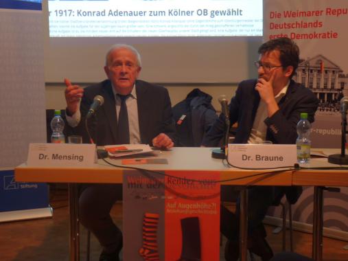 Doch gerade in Weimar, „am Geburtsort der ersten deutschen Demokratie“, so Dr. Mensing, müsse man, um die Grundlagen zu verstehen, die es Konrad Adenauer erlaubt hätten, diesen Weg der Bundesrepublik einzuschlagen, weiter zurückgehen. Eben in die Zeit der Weimarer Republik, zu deren höchsten Repräsentanten Adenauer als Präsident des Preußischen Staatsrats und später als Kölner Oberbürgermeister gehört hatte.