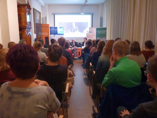 Prof. Dr. Torsten Oppelland, Professor für Politikwissenschaften an der Friedrich-Schiller-Universität Jena, wurde dankenswerterweise von Dr. Andreas Braune von der Forschungsstelle Weimarer Republik (ebenfalls Jena) in der Moderation des Podiumsgesprächs vertreten, das sich an den Vortrag von Dr. Mensing anschloss.