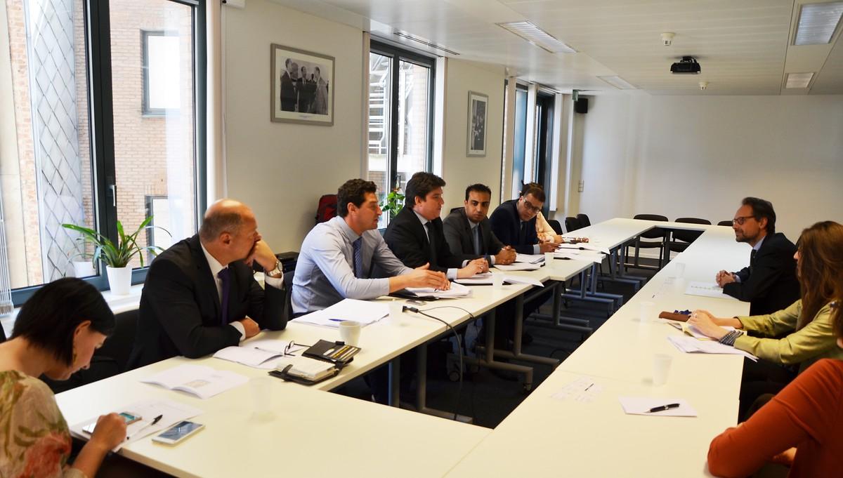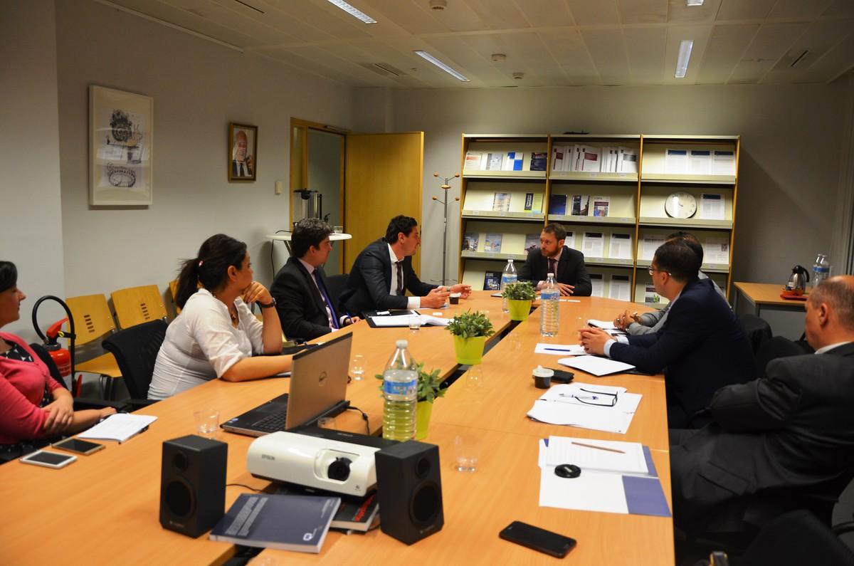 Pour mieux se familiariser avec les think tank considérés comme inédits, la délégation a effectué une réunion au Wilfried Martens Center, une structure qui n’a que 10 ans d’existence mais qui dispose d’un réseau de partenaires (environ 40) à l’échelle européenne. Contrairement à l’ITES à vocation indépendante, c’est un think tank affilié au Parti Politique Européen PPE. L’échange avec Roland Freudenstein, son directeur adjoint et chef de projet, a mis au clair que le rôle de cette structure est le conseil, la mise en place de stratégie dans la campagne électorale du parlement européen, mais aussi l’analyse approfondie à long terme des sujets qui intéressent le parti. Le Martens Center se charge également de plaidoyer et de prévision des grands développements à l’échelle régionale.