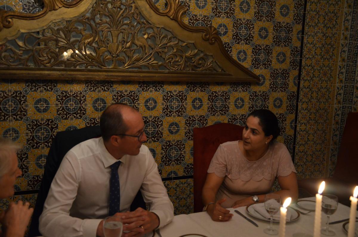 Grâce à un dîner avec Wafa Lamiri, directrice de CJD, M. Stein avait l’opportunité de s’informer des problèmes fréquents de jeunes entrepreneurs en Tunisie.