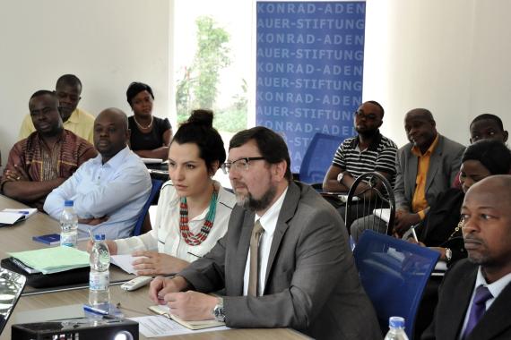 Malgré tous les progrès économiques, la pauvreté reste un problème en Côte d'Ivoire ce qui constitue en même temps un défi au niveau de la sécurité. Lors d'une conférence sur la politique sécuritaire en Afrique de l'Ouest, M. Lämmel a insisté sur la nécessité d'une coopération régionale afin de combattre de manière efficace le terrorisme. De plus, il importe d'offrir des perspectives d'avenir aux jeunes sans lequelles le problème du terrorisme ne pourra pas être résolu, a continué le député. Dans ce contexte, M. Lämmel a salué la décision de la Fondation Konrad Adenauer d'élagir son engagement dans le domaine en installant le nouveau "Programme pour le Dialogue sur la Politique Séuritaire en Afrique sub-saharienne" à Abidjan et un bureau supplémentaire au Mali. L'importance que l'Allemagne accorde à la question se montre par exemple par sa participation à la mission MINUSMA des Nations Unies avec 650 soldats allemands, a conclu M. Lämmel.
