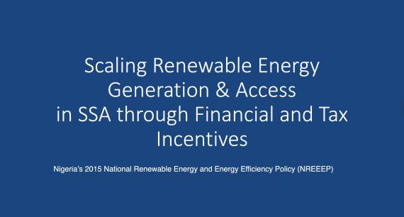 Scaling Renewable Energy Generation & Access in SSA through Financial and Tax Incentives