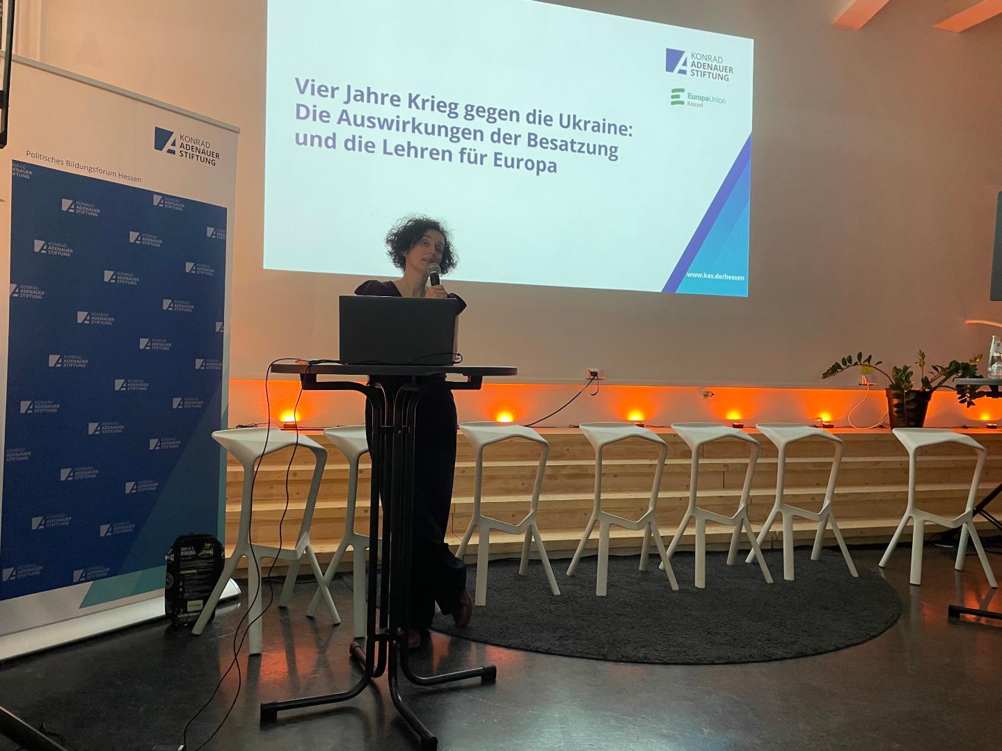 Man müsse sich eingestehen: Russland wolle keinen Frieden und führe längst auch einen hybriden Krieg durch Desinformationen, Manipulation, Parteienfinanzierungen, Sabotagen etc. hier. Währenddessen töte der Krieg nicht nur an der Front, sondern auch durch Stress, Angst Traumata und Kälte, leide die Ukraine auch durch die vielen ungeborenen Kinder. 70 Prozent der Ukrainer hätten bereits jemanden aus ihrem Umfeld im Krieg verloren. Elwira Niewiera mahnte: Kriegsverbrechen gehörten sanktioniert und Russland müsse in Gänze scheitern, sonst könne „Cherson morgen Berlin sein“ – wir seien schon zu spät dran.