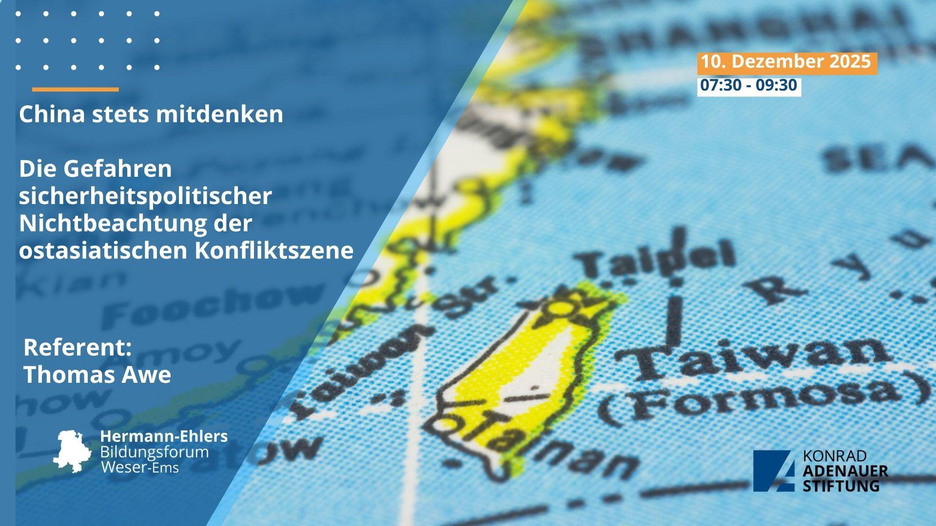 Chinas Anspruch auf Taiwan, mehr als nur propagandistischer Drohgebärden? Eine brisante Frage angesichts dessen, dass die Konfliktsituation rund um Taiwan vor dem Hintergrund anderer internationaler Konflikte derzeit lediglich eine geringe Aufmerksamkeit erfährt. Dies gilt sowohl für die mediale als auch gesamtgesellschaftlichen Betrachtung. Dabei birgt eine solche sicherheitspolitische Nichtbeachtung potenzielle Gefahren. Die Weltordnungs- und Steuerungsstrukturen in Ostasien befinden sich im Umbruch. China und die USA befinden sich auf Kollisionskurs, die asiatische Sicherheitsarchitektur wandelt sich, und es entsteht eine neue geopolitische Bedeutung des Taiwankonfliktes. Eine Bedeutung, der sich auch Europa nicht entziehen kann. Die zentrale Frage besteht darin, wie sich die sicherheitspolitische Konstellation Chinas, den USA und Europas gegenwärtig sowie zukünftig ausgestaltet. Diese und weitere Aspekte des China Taiwankonfliktes diskutiert der ehemalige Leiter der Konrad-Adenauer-Stiftung China und Experte für die Region, Thomas Awe.Program