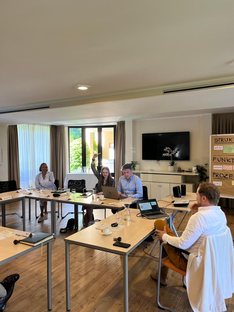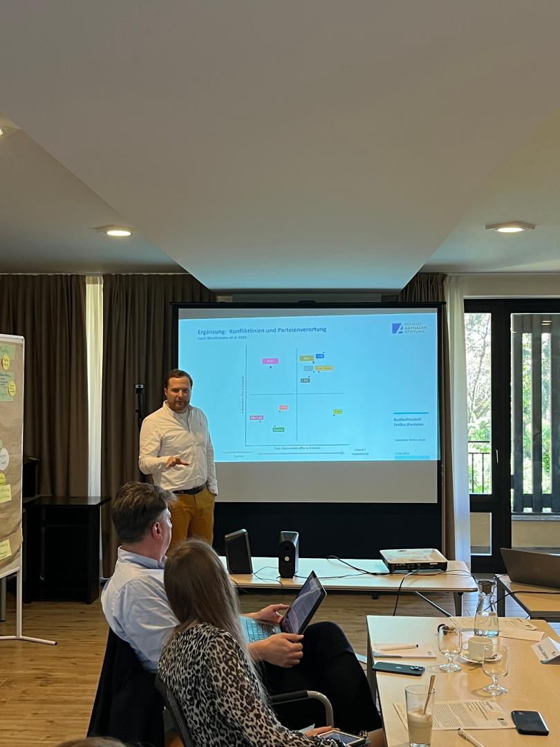 Sonntags schlossen wir das Seminar mit einer Einheit zum Thema Digitalisierung von Parteien ab. Herr Weise klärte die Teilnehmerinnen und Teilnehmer über KI und generative KI auf und argumentierte, dass generative KI als Unterstützung in der politischen Arbeit genutzt werden könne, zum Beispiel in der Informationsbeschaffung, in der Erstellung von ersten Textentwürfen oder auch im Überprüfen von Texten.