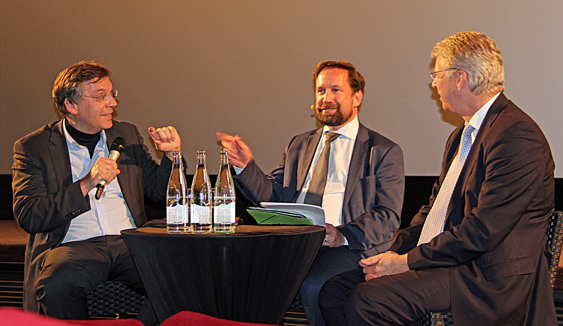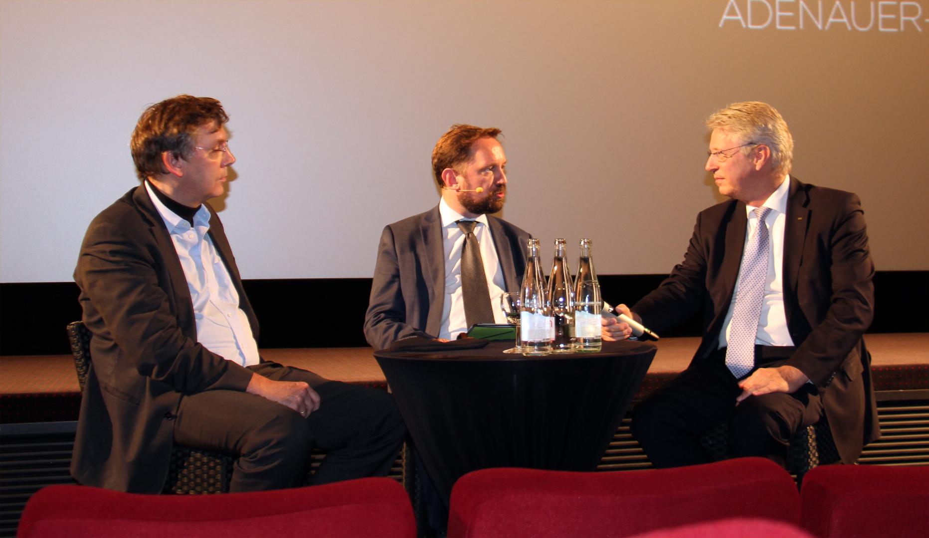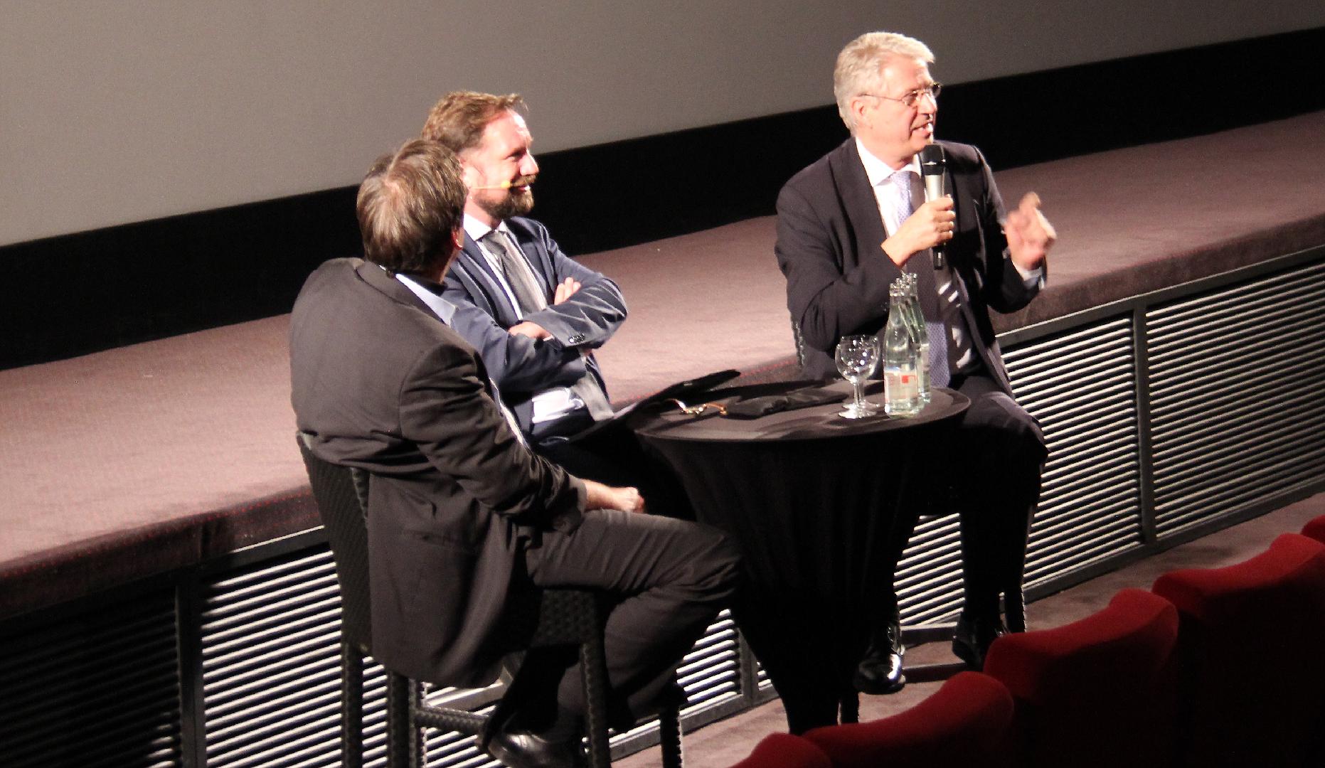 Im Anschluss an den Film diskutierte Dr. Michael Borchard, Leiter der Hauptabteilung Wissenschaftliche Dienste/Archiv für Christlich-Demokratische Politik, mit den Podiumsgästen. Thomas Reiter bescheinigte dem Film eine hohe Authentizität. So seien die Darstellungen im Film sehr nah am wirklichen Leben als Astronaut. Er selbst habe die Zeit der Ausbildung, die er Anfang der 1990er Jahre im russischen „Sternenstädtchen“ absolvierte, sehr genossen. Gleichwohl sei er auch aufgrund der technologischen Fortschritte nie einer so großen Gefahr ausgesetzt gewesen, wie es noch bei den ersten Apollo-Astronauten der Fall gewesen war, die viele Technologien damals ganz neu erproben mussten.