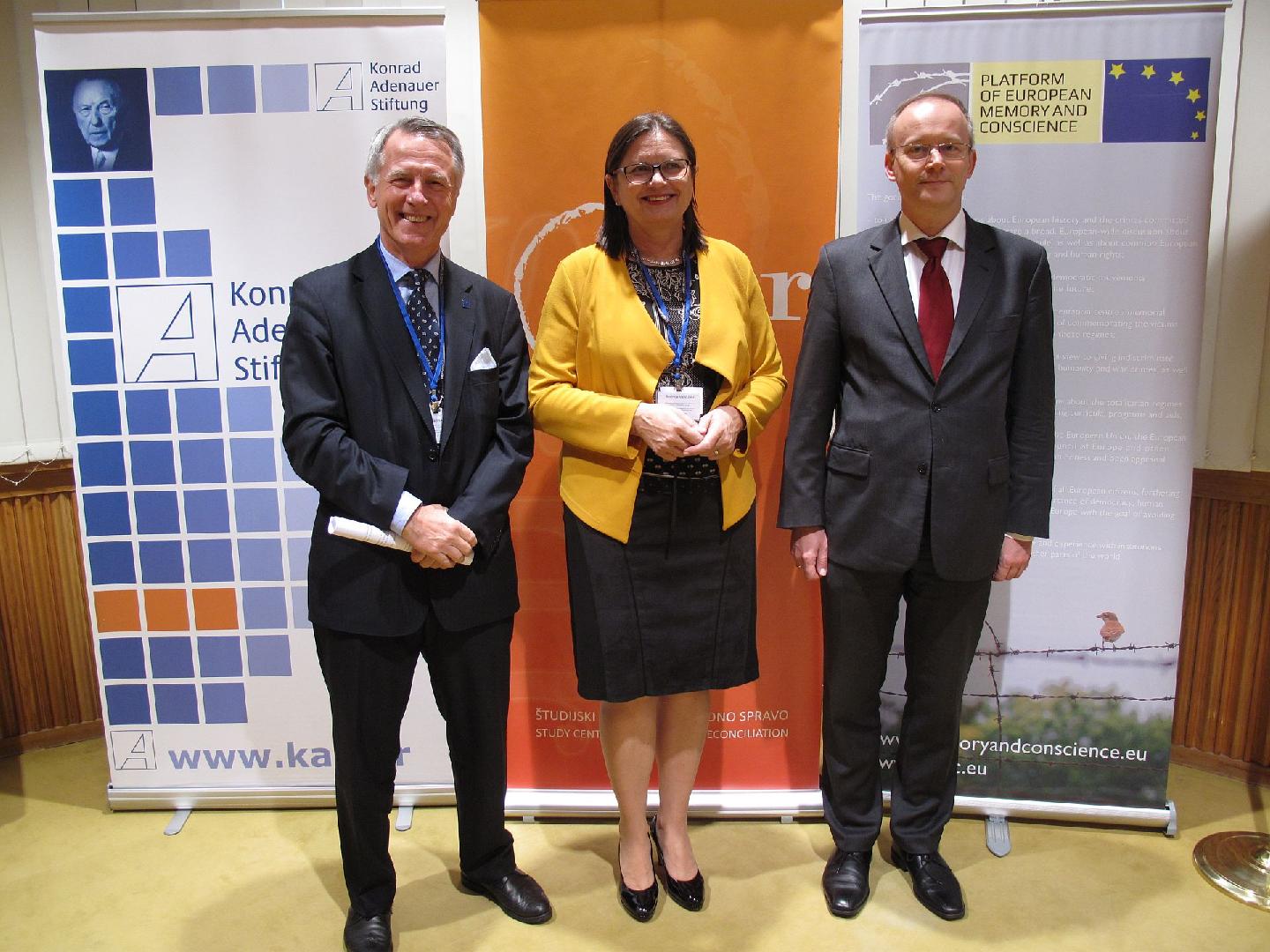 Die Konrad-Adenauer-Stiftung veranstaltete gemeinsam mit dem SDS-Bildungsinstitut (IJP) am 14. November 2018 in Ljubljana aus Anlass des 20. Jahrestages der Veröffentlichung der Monographie „The Dark Side oft the Moon: A Brief History of Totalitarianism in Slovenia 1945-1990“ in Ljubljana eine Festveranstaltung, bei der der SDS-Parteivorsitzende Janez Janša mit in-und ausländischen Historikern und Wissenschaftlern über die Vergangenheitsbewältigung in Mittel- und Osteuropa sowie über die Erfahrungen aus Slowenien mit der Aufarbeitung der Folgen totalitären Regime debattierte.