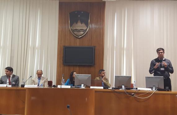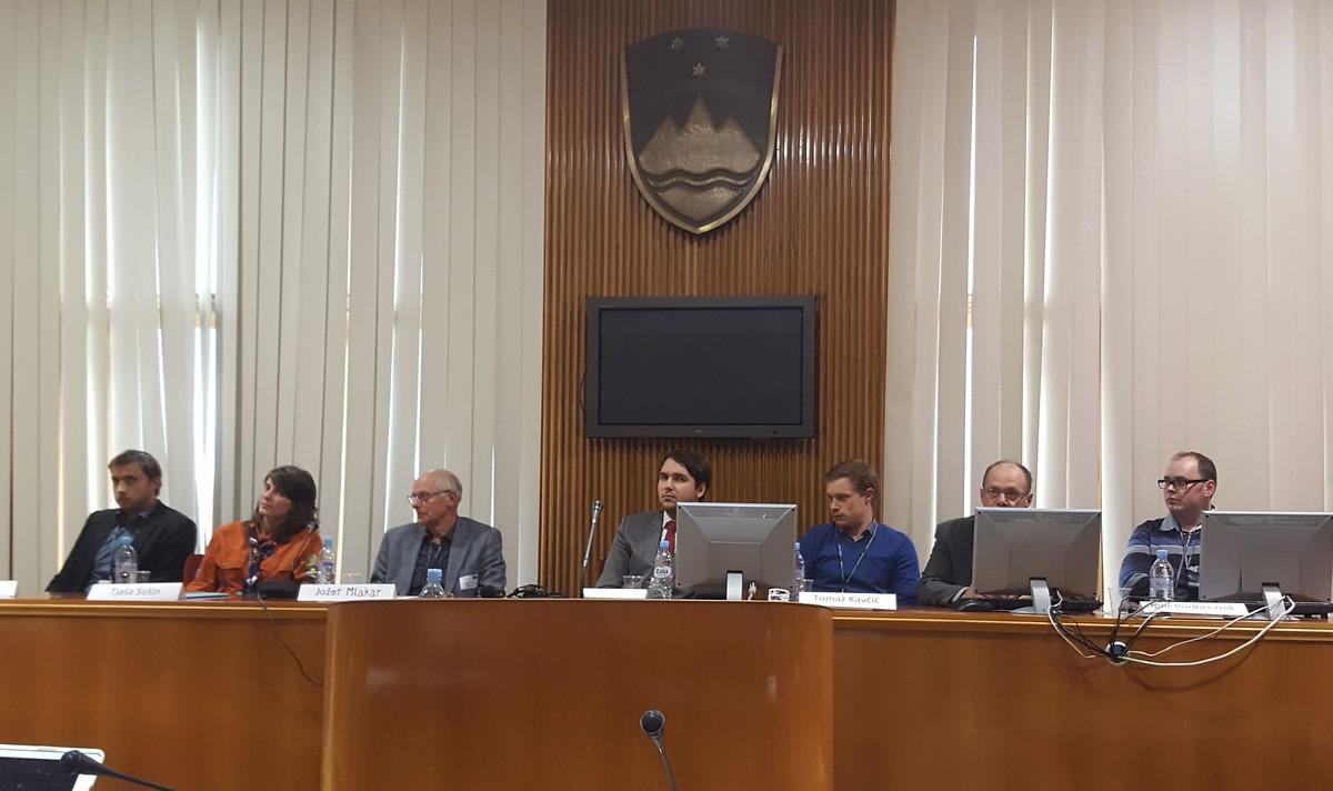 S lijeva na desno v. l. n. r. Marko Balažic (Udruga Fokus-2031), prof. dr. Tomaš Erzar (Teološki fakultet Sveučilišta u Ljubljani), prof. dr. Simona Kukovič (Fakultet društvenih znanosti Sveučilišta u Ljubljani), Mario Plešej (politički analitičar, Socijalna akademija) i Matej Cepin (Socijalna akademija)