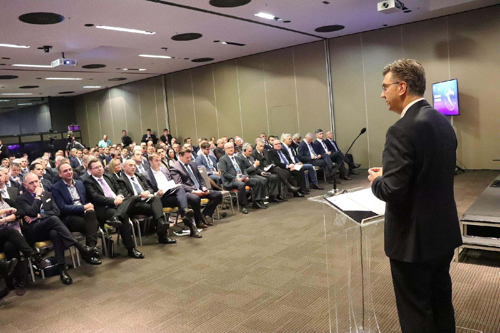 Der Ministerpräsident der Republik Kroatien und HDZ-Parteivorsitzender, Andrej Plenković, betonte am Anfang seiner Rede die Wichtigkeit einer einheitliche Politik auf allen Ebenen für die Erfüllung kroatischer nationaler Interessen. Er sehe in den Gesetzen der Lokal- und Ortsverwaltung wichtige Bausteine stabiler demokratischer Institutionen. Ein wichtiger Schwerpunkt sei auch die ungleiche Entwicklung verschiedener Teile Kroatiens, worauf man mit einer Verabschiedung eines Gesetzespakets reagieren müsse, mithilfe dessen man eine Plattform für die Weiterentwicklung wenig entwickelter Gebiete schaffen würde. Danach kommentierte er die Haushaltskonsolidierung und beschrieb sie als eine wichtige Nachricht für Brüssel, dass man in Kroatien verantwortlich mit eigenen Ressourcen umgehe. Im Haushalt für das Jahr 2019 habe man große soziale Verantwortung gezeigt und zugleich wichtige Schritte in Richtung weiterer Erhöhung von Wettbewerbsfähigkeit und Wirtschaftswachstum gemacht. Große Aufmerksamkeit lenkte er auf die Bildungsreform, die er als die wichtigste Voraussetzung für eine erfolgreiche Teilnahme in der Industrie 4.0 und der Digitalisierung bezeichnete. Dann nahm er Bezug auf die Steuerreform und äußerte die Erwartung, dass man dadurch den Preis des (Basis-)Warenkorbs senken werde. Ein weiteres Thema war auch der Beitritt Kroatiens in den Schengen-Raum, wo er die Unterstützung der Mitgliedsstaaten an den EU-Außengrenzen als wichtigen Bestandteil der Idee des Schengenraums bezeichnete. Bezüglich der Einführung des Euros habe man die Entscheidung darüber schon beim EU-Beitrittsreferendum getroffen. Heute liege die Herausforderung nur darin, die Kriterien erfolgreich zu erfüllen, wobei der nächste Schritt die Teilnahme im Wechselkursmechanismus II sei. Abschließend hob er die Projekte, wie den LNG Terminal auf der Insel Krk und die Peljesac-Brücke, als zukünftiges Symbol der ersten Jahre der EU-Mitgliedschaft.