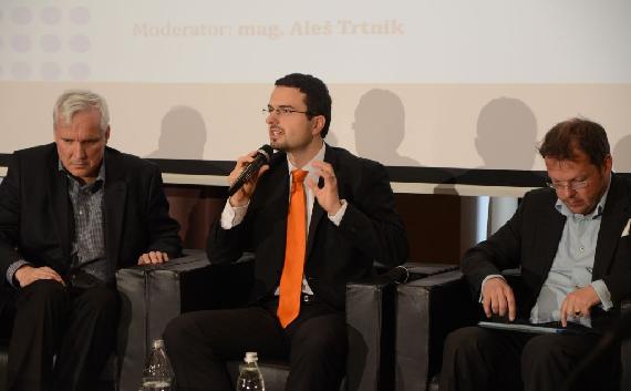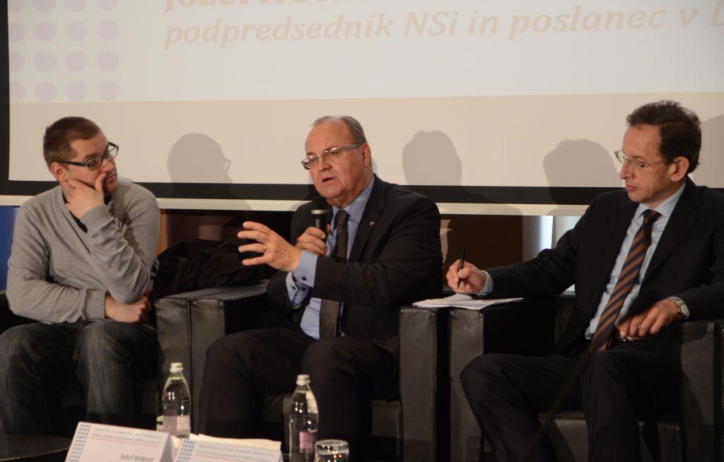 S lijeva na desno: Aleš Maver (urednik novina Časnik, Časnik.si), Jožef Horvat (zastupnik u slovenskom parlamentu, potpredsjednik NSi-a, predsjednik Slovensko-njemačke parlamentarne skupine prijateljstva u slovenskom parlamentu) i prof. dr. sc. Žiga Turk (Sveučilište u Ljubljani, bivši ministar obrazovanja Rep. Slovenije)