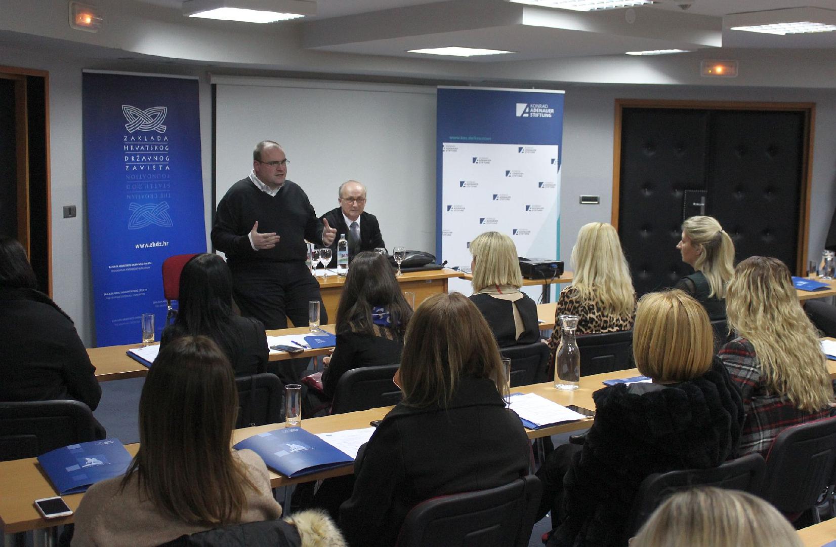 Zaklada Konrad Adenauer organizirala je zajedno sa Zakladom hrvatskog državnog zavjeta (ZHDZ) od 25. do 27. siječnja 2019. godine u Zagrebu seminar za mlade političarke HDZ-a. U nazočnosti predsjednika Hrvatskog sabora i glavnog tajnika HDZ-a, Gordana Jandrokovića te zastupnice u Hrvatskom saboru i bivše apsolventice seminara "Žene u politici", Sanje Putice, dodjeljena su uvjerenja uspješnim polaznicama treće generacije navedenog seminara. Istodobno, održan je i prvi seminar u nizu seminara za četvrtu generaciju mladih političarki HDZ-a.