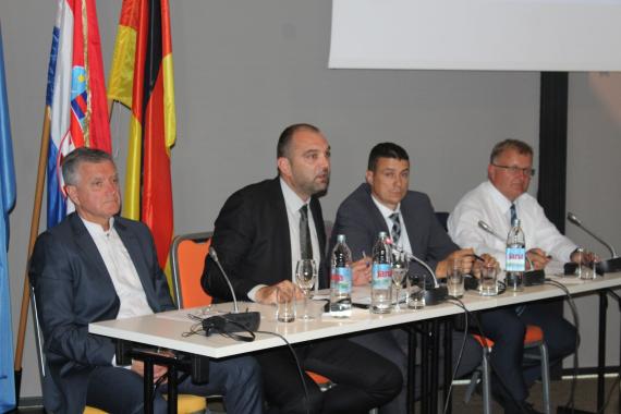 II. Podiumsdiskussion, v. l. n. r. Martin Baričević, Gemeinderat der Gemeinde Jasenice; Präsident der kroatischen Gemeinschaft des Gemeinderates; Igor Andrović, Landrat der Region Virovitica und Tomislav Mihotić, Staatssekretär im Verkehr- und Infrastrukturministerium