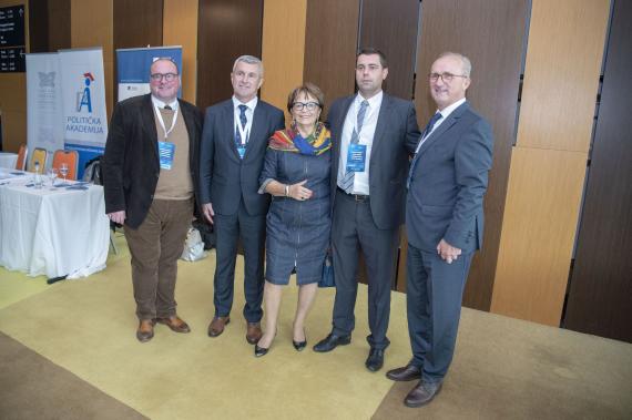 III. Podiumsdiskussion, v. l. n. r. Željko Burić, Bürgermeister der Stadt Šibenik; Mario Šiljeg, Staatssekretär im Energie- und Umweltministerium; Goran Kaniški, Gemeinderat der Gemeinde Gornji Kneginec und Željko Turk, Bürgermeister der Stadt Zaprešić; Vorsitzender des kroatischen Städteverbandes